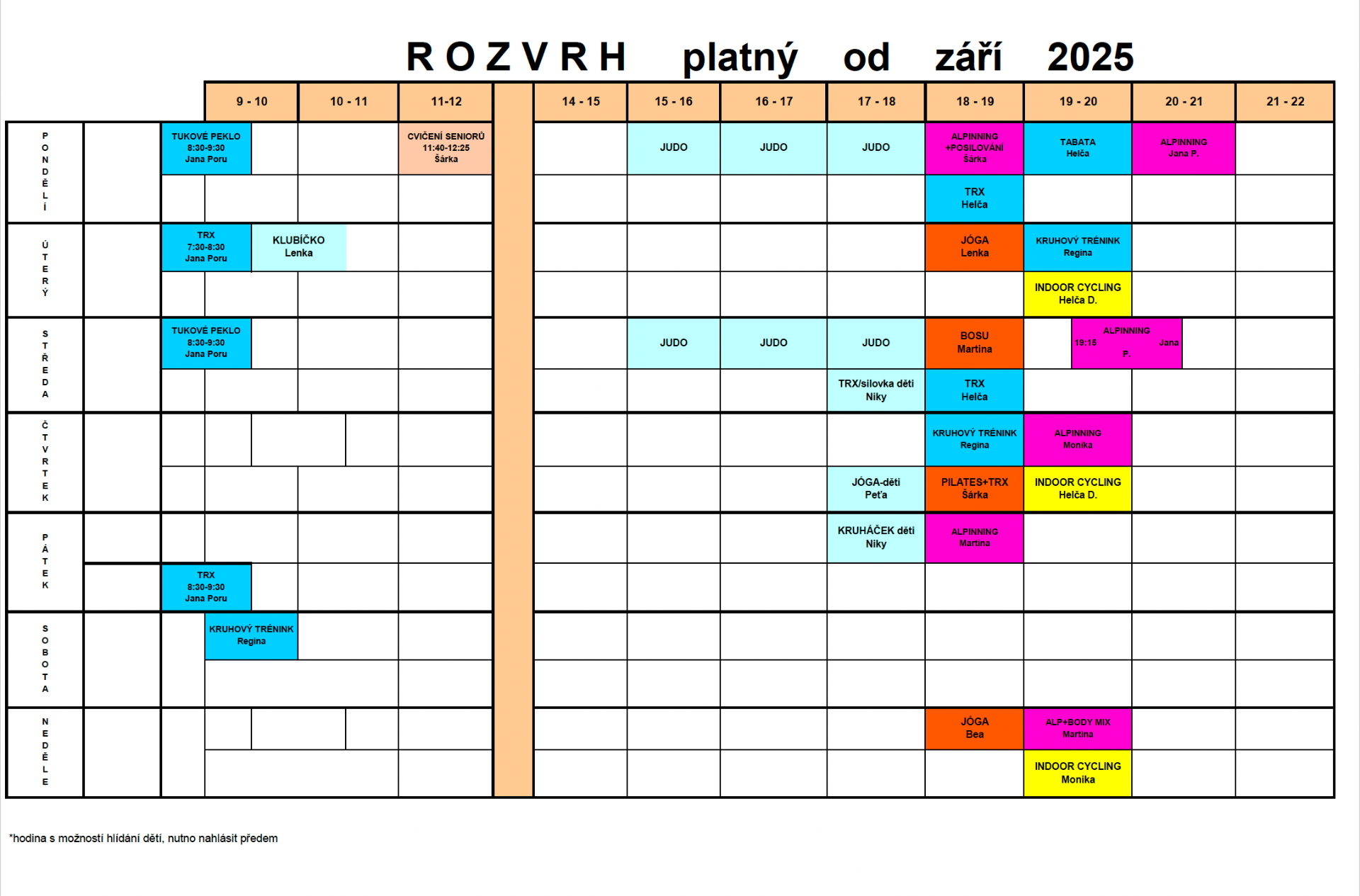 Vstup s trenérem denně 7:00 - 21:00.